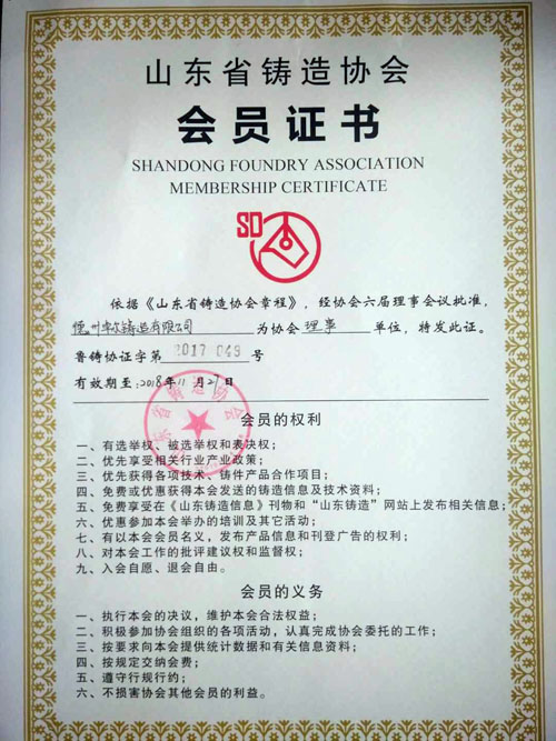 中國(guó)鑄造協(xié)會(huì)會(huì)員證書